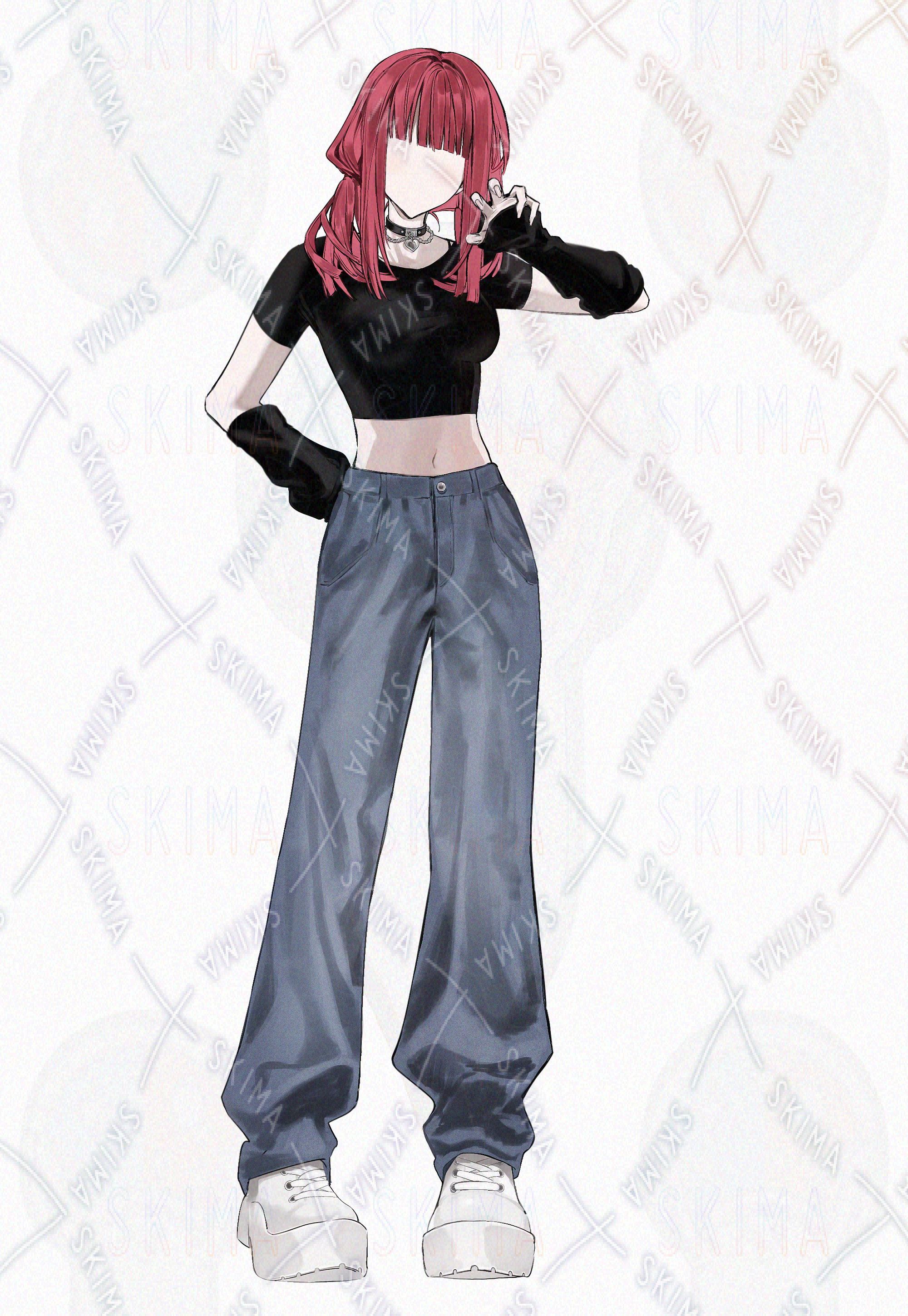 普段描かないタイプのヘソ出しコーデの女性キャラです。いつもより大人っぽさを目指しました。刺さる方に届くと嬉しいです。