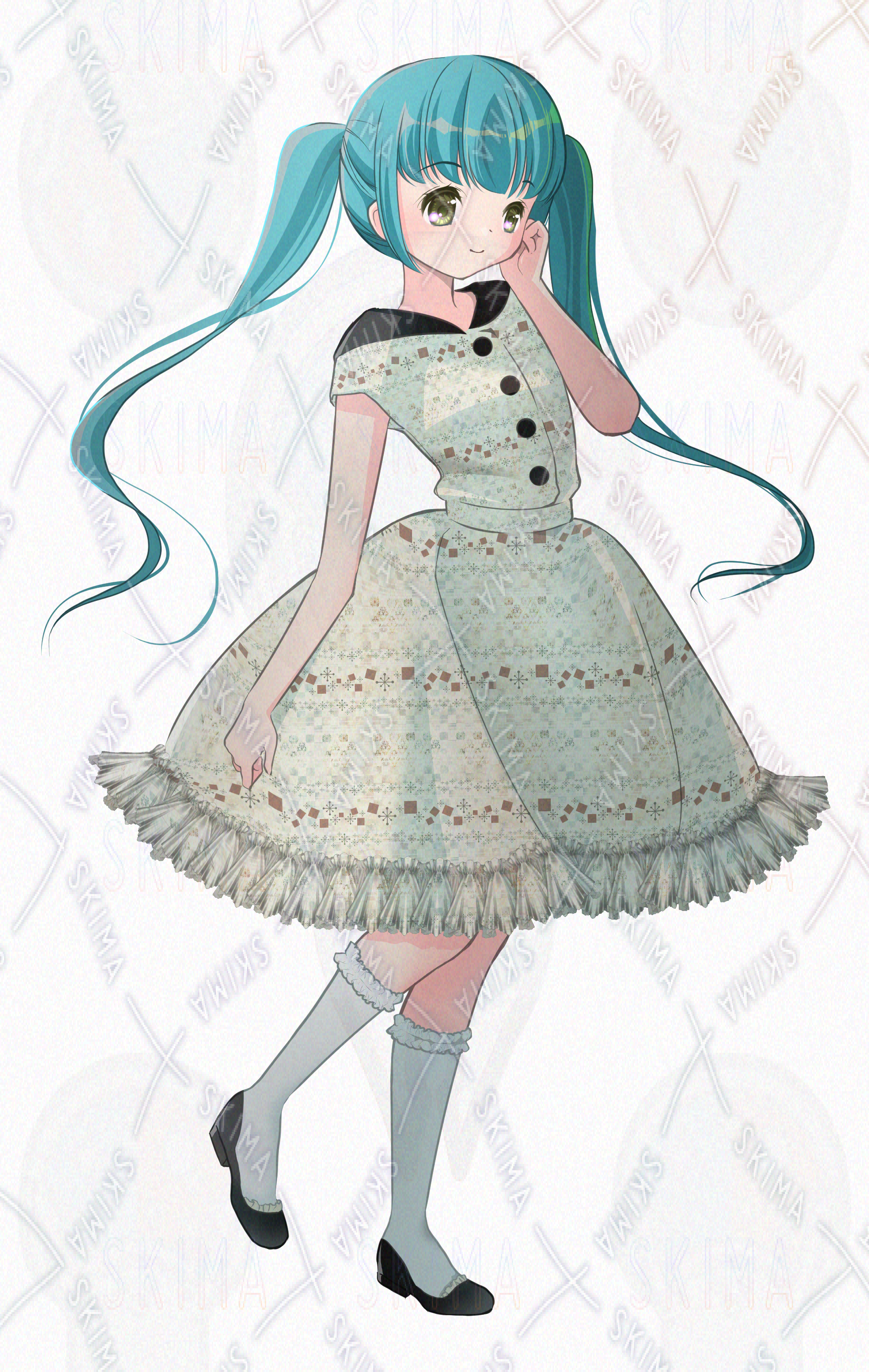 女の子/ツインテール/青い髪/ワンピース/夏服