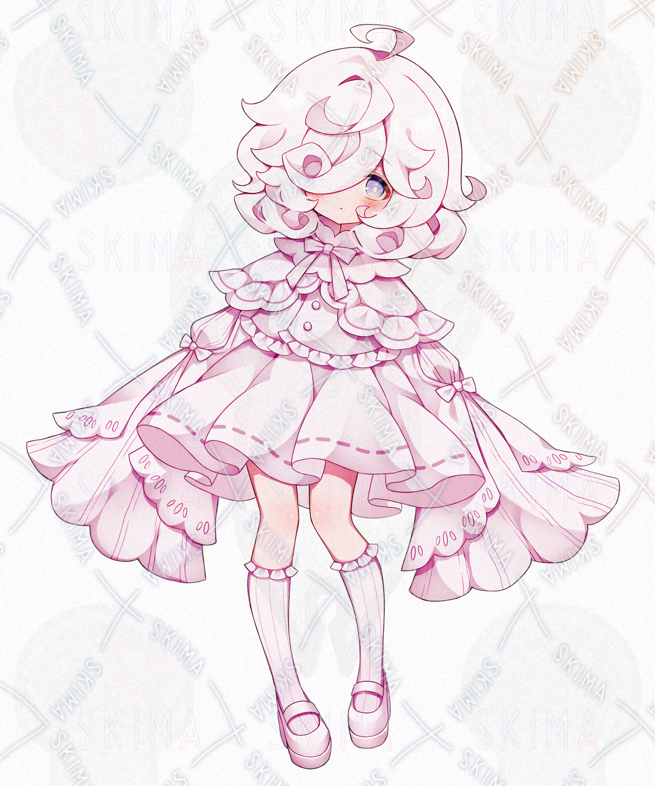 美少女/かわいい/女の子/お姉さん/ゆるふわ/ファンタジー/血/隠れ目/アホ毛/ネコ耳/白髪/リボン/綺麗/ロリータ風/フリル