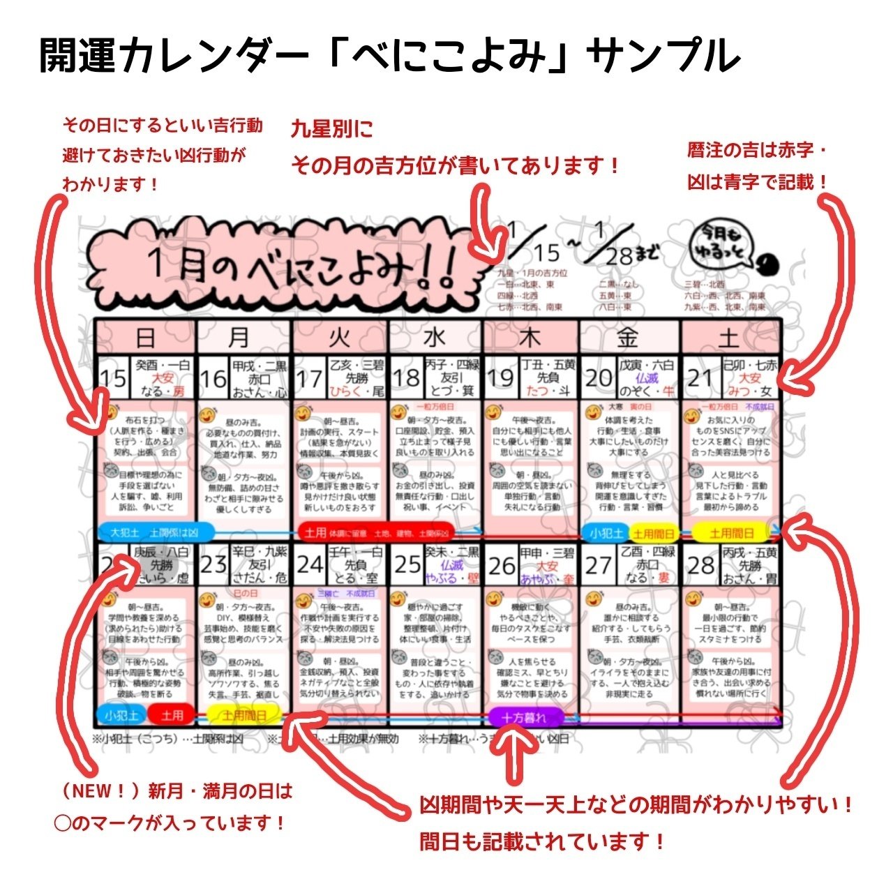 開運カレンダーなど、