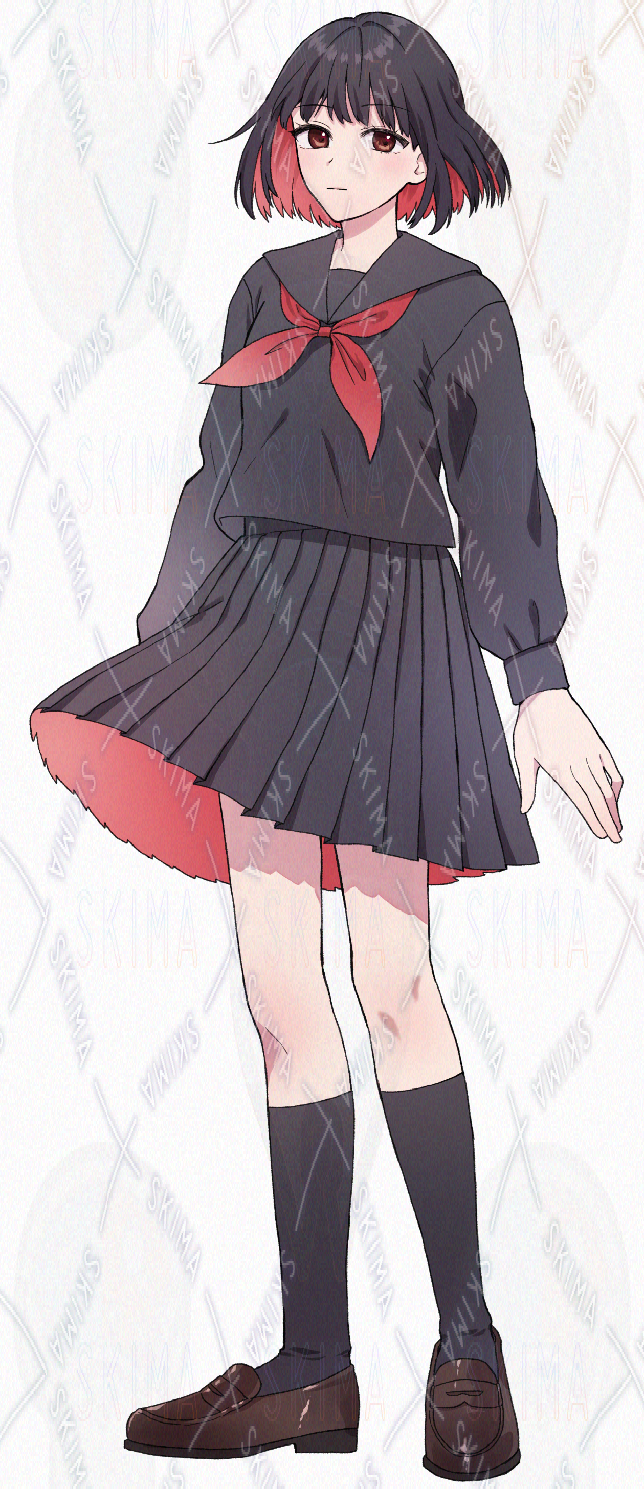 ミニスカート、制服、ボブ、セーラー、黒髪