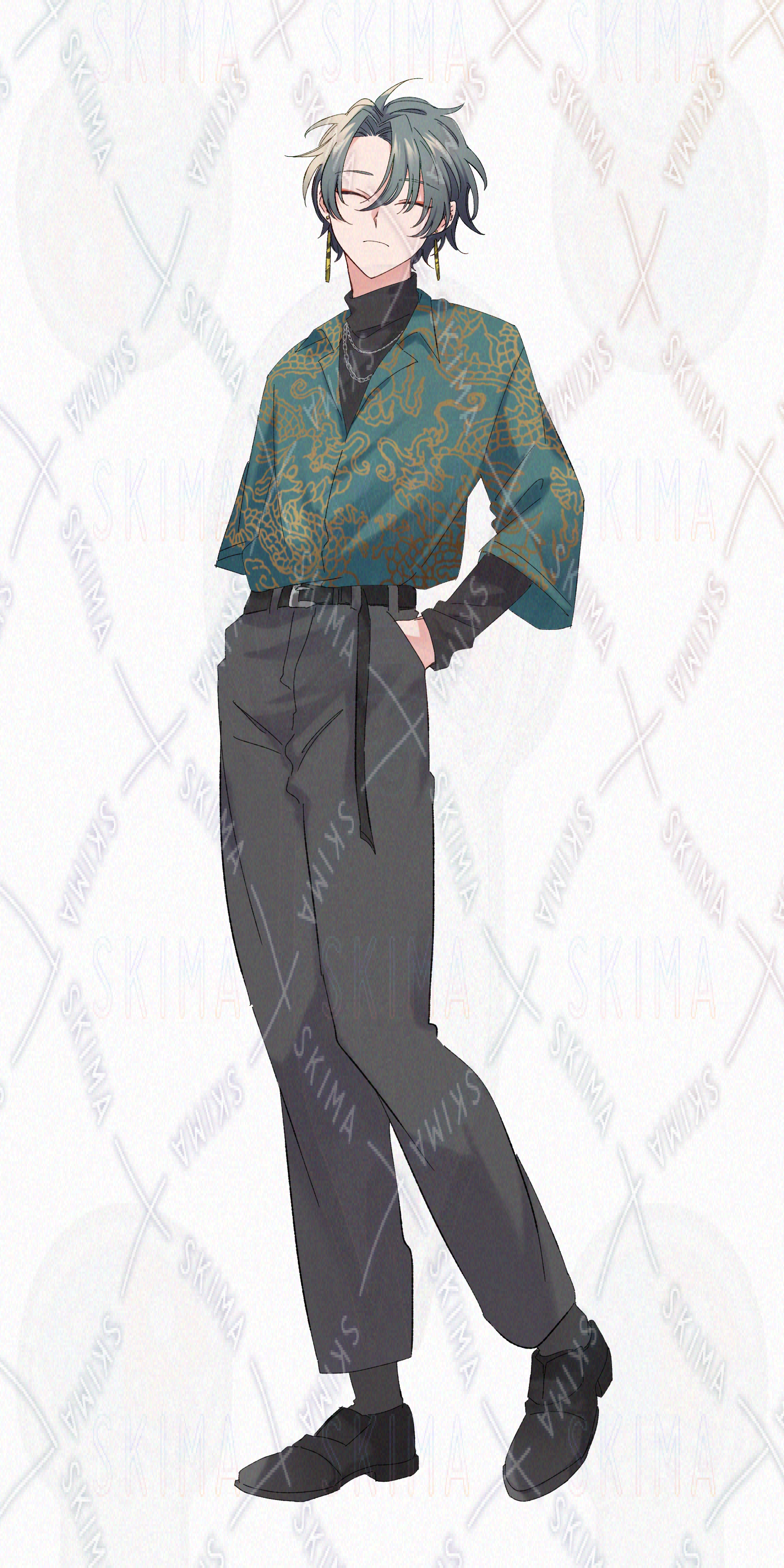 糸目な緑髪の男性【表情差分6種類】です。