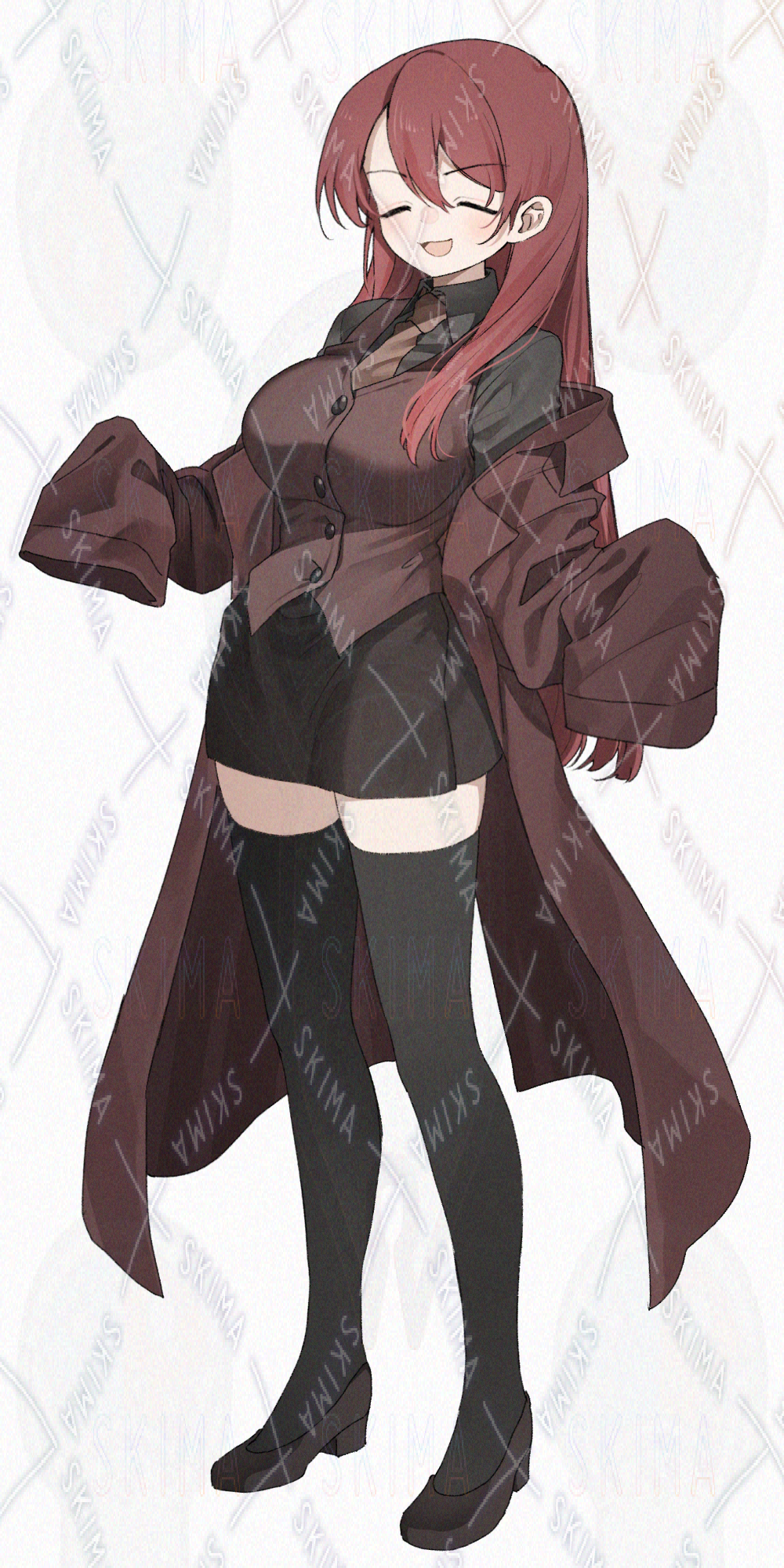 赤髪ロングヘア、フォーマルな服装の、たれ目つり眉お姉さんです。キャラ設定はご自由に。