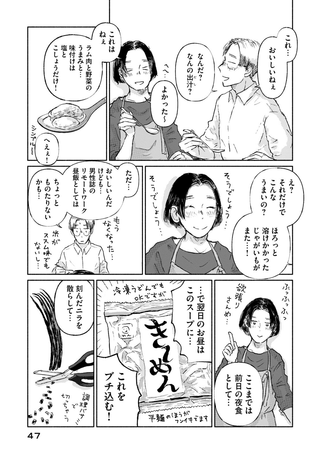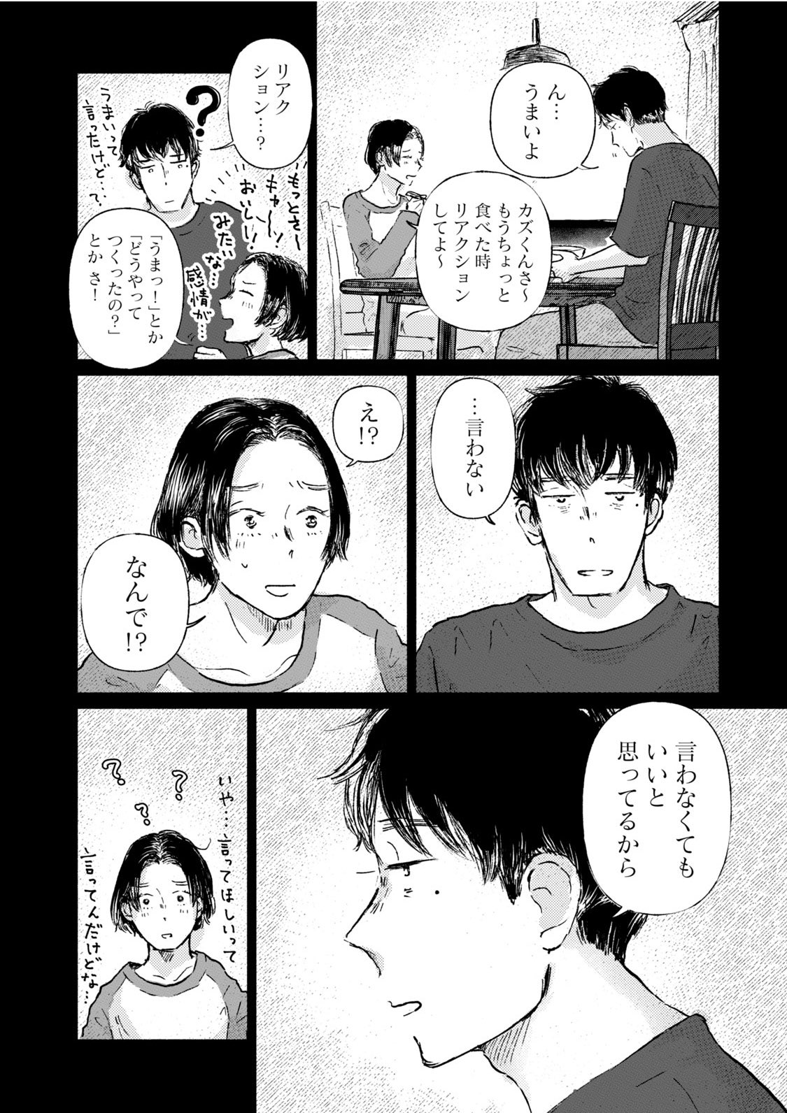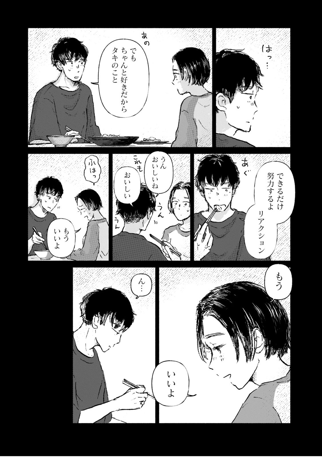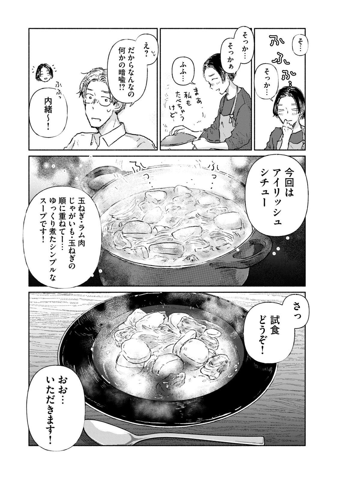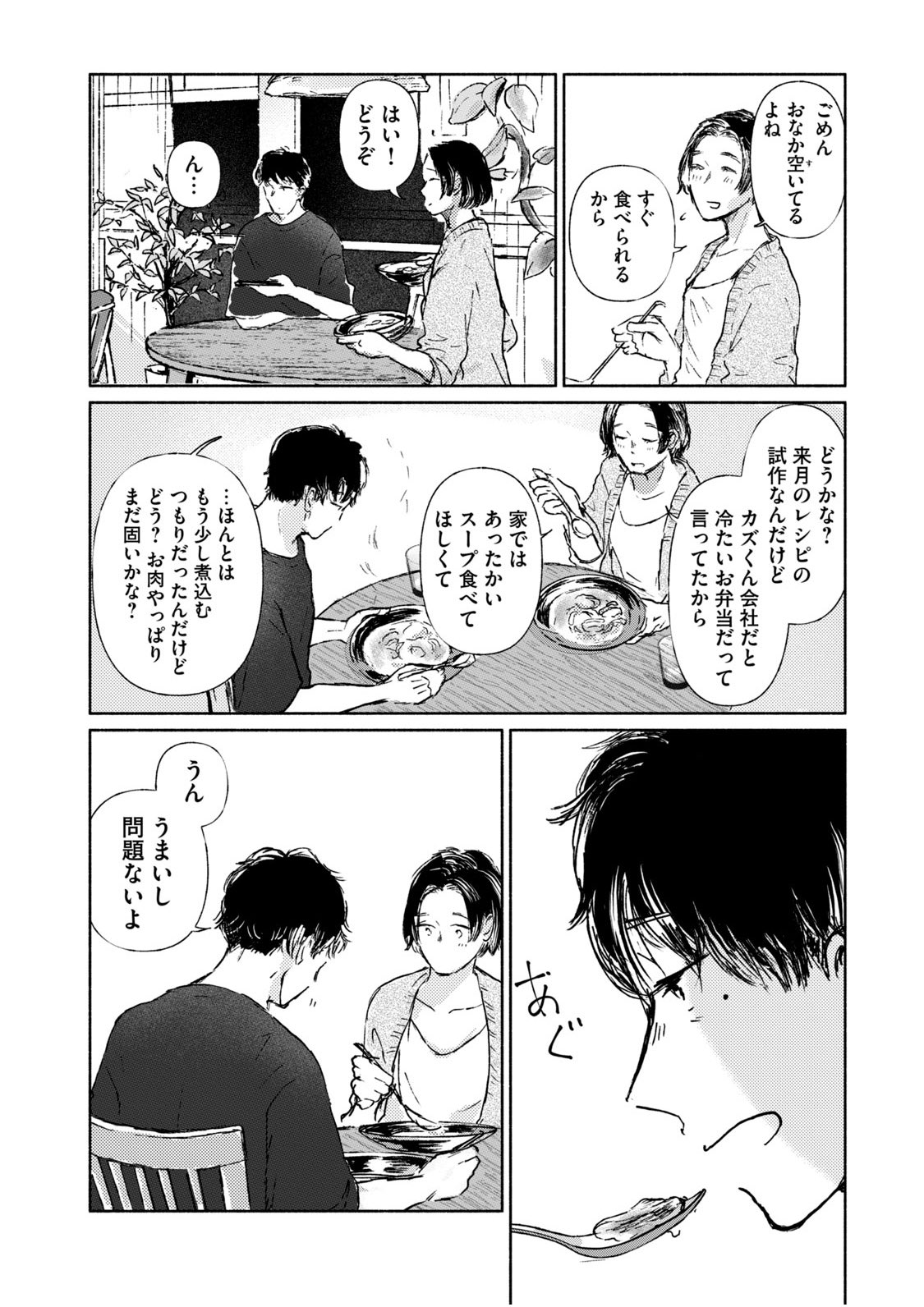 料理教室講師のタキと料理雑誌編集者のレイは、家で一緒にご飯を作って、一緒に食べている。仕事の取材のためでもあるけれど、その時間も今では日常のひとつ。料理の過程を共に楽しめるし、美味しくて健康的な食事を追求したい! という気持ちも共有できて、二人で囲む食卓はとても特別なもの。この時間がずっと続きますようにと、二人とも願っている。しかし、そう願わずにはいられない理由が二人の間にはあるーー。均衡が...