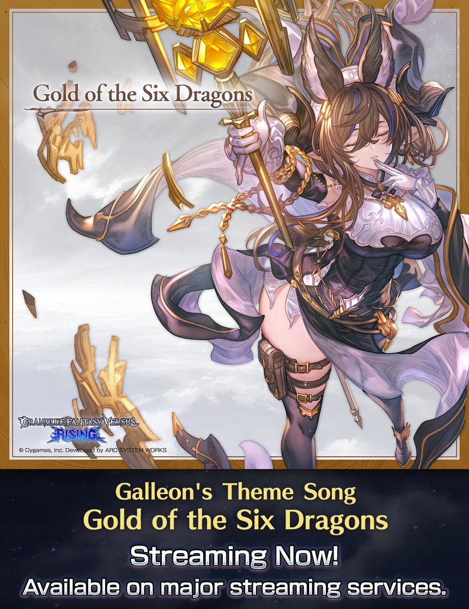 Galleon's theme song, Gold of the Six Dragons, has been added to the Granblue Fantasy Versus: Rising soundtrack on major digital and streaming services! 💋 💿 Listen now: nex-tone.link/A00186252 #GBVSR pic.x.com/6VBl8BBmYa