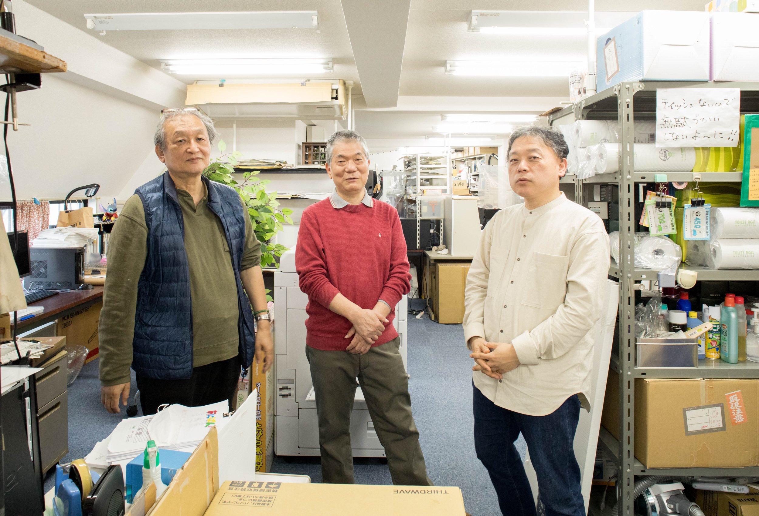 Hiroshi Ohno, Toshiharu Mizutani and Katsufumi Hariu at Studio Fuga, Tokyo, Japan in Dec. 2021. Photo by Yasuyuki Takagi.