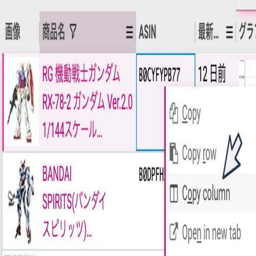 ASINの上で右クリック → Copy columnをクリック
