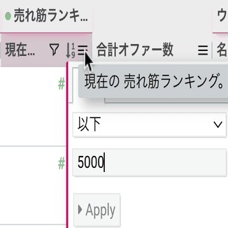また、カーソルが当たっている3本線をクリックすると、表示する商品を絞ることができます。