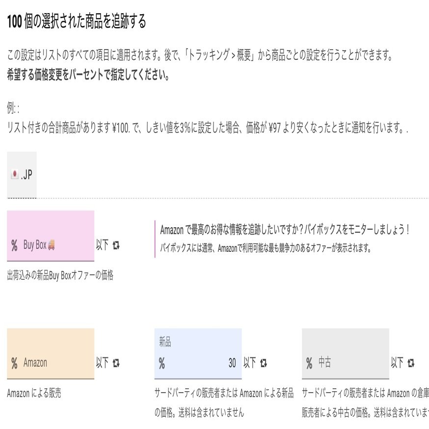 普段は、目標価格を打ち込みますが、一括トラッキングでは「%」で設定することができます。