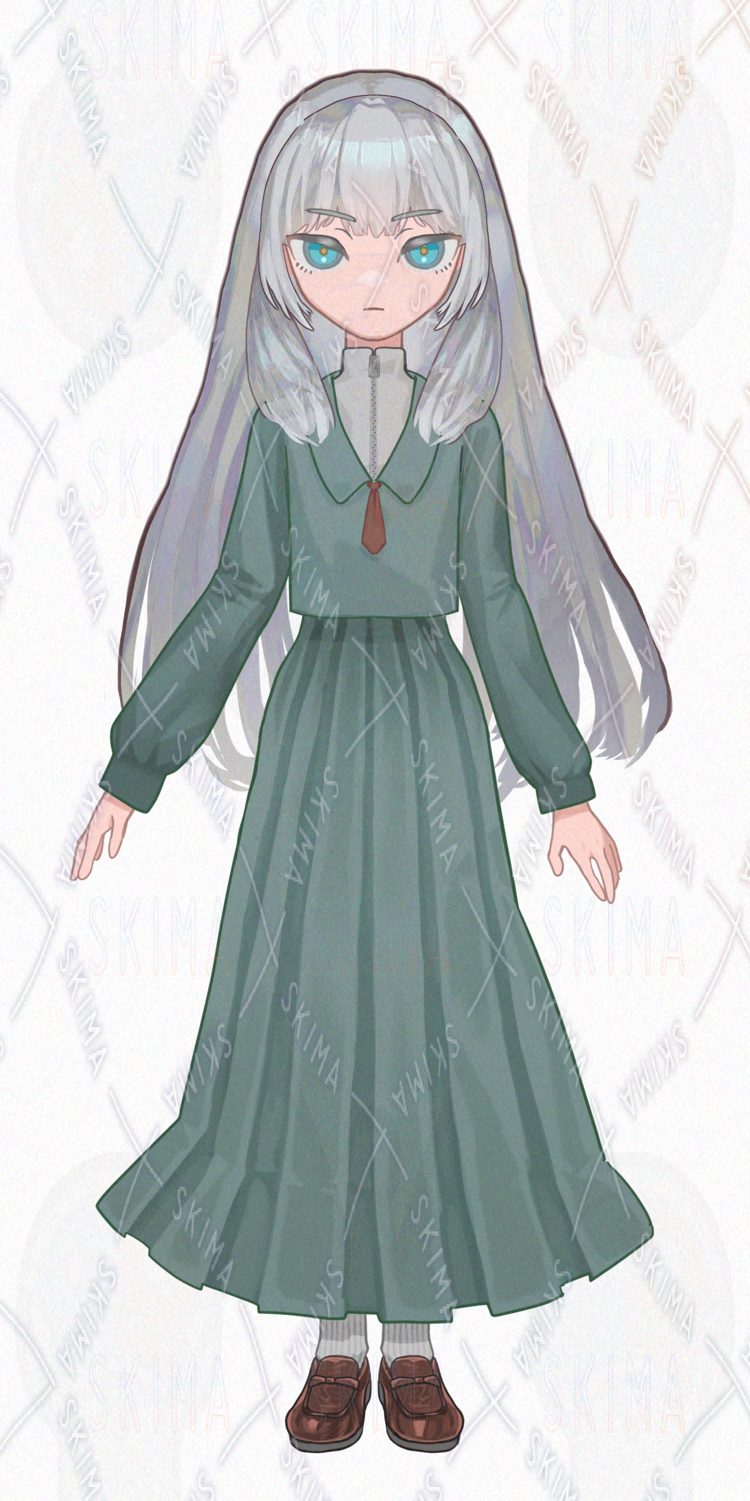 セーラー服 制服 銀髪 白髪 ロングヘア ロングスカート 女子高生 高校生 中学生 お嬢様 令嬢