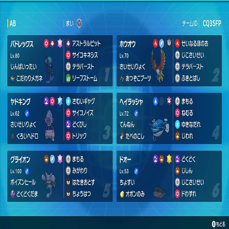 数値受けをするかタイプ受けをするかで今期選ばれたのはドオーだった。度忘れは詰めや瞑想ミライオーガに強くなるし、どくどくは対面や引き先に毒を入れられるのが優秀特にランドロス。ステロの枠は地震と変えながら使っていた。