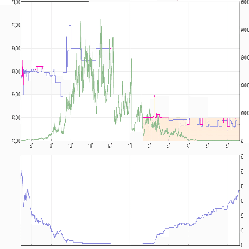 テレビ番組の影響で需要ブーストがかかり、Amazonが枯れた後7000円近くまで高騰していきました。