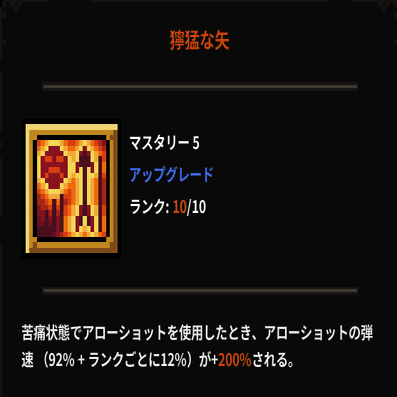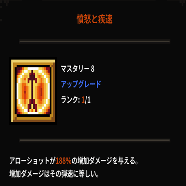 アローショットのマスタリー5で習得できる【獰猛の矢】とマスタリー8で習得する【憤怒と疾速】の組み合わせが強力なためです。