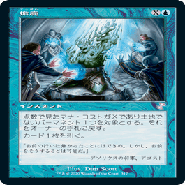 2マナのバウンス呪文は、《虚空の杯》X=0とX=1で固められたときに重宝します(しかもまとめて戻せる)。同名トークンもまとめて処理できるので、サーガトークンが並んでも怖くないです。