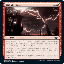 これを対処できないストームデッキはだいたい勝ち手段を失うので詰ませることができます。ストーム6の時点で10点ダメージ、6個目がストーム呪文だと5個コピーができるので追加で10点ダメージ(合ってる?)。