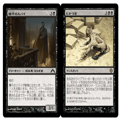 マナ加速等を経て置いたら勝ち、打ったら勝ちという性質は《欄干のスパイ》や《むかつき》などと通じるものがあるとわたしは勝手に考えています。既にレガシーにはこういったストームデッキや1枚コンボデッキが存在しているので、創造の歌デッキも成立しないわけがないだろうと考えていました。