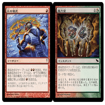 例えば、《炎の儀式》は1マナで赤赤を生み出します。