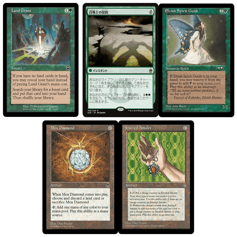 ベルチャーやスパイとは異なり、創造の歌デッキではある程度の枚数土地カードを入れることができるため、《土地譲渡》や《モックス・ダイアモンド》も採用検討リストに入ります。