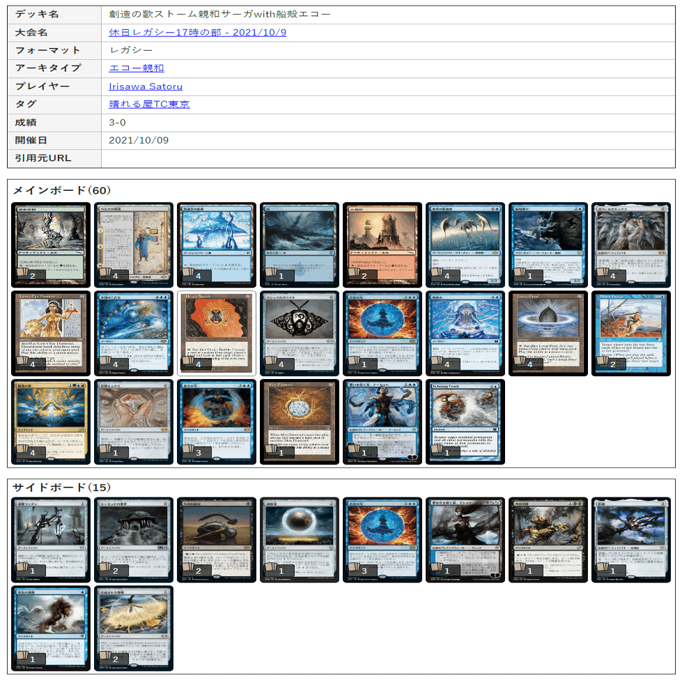 (ちなみにSamuraiFunn氏のデッキとAugustRush氏のデッキはほとんどリストが同じなのにアーキタイプ分類が異なっています。どちらも謎鍛冶ストーム系だと思いますけれども…2022年現在からするとこのタイプをエコー親和と言うとかなり語弊がありそうです)