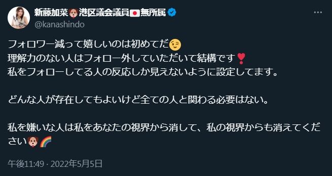 - 批判に対し「嫌なら見るな」と返す新藤加菜は、天地がひっくり返っても絶対に公職に就いてはいけない人間であること