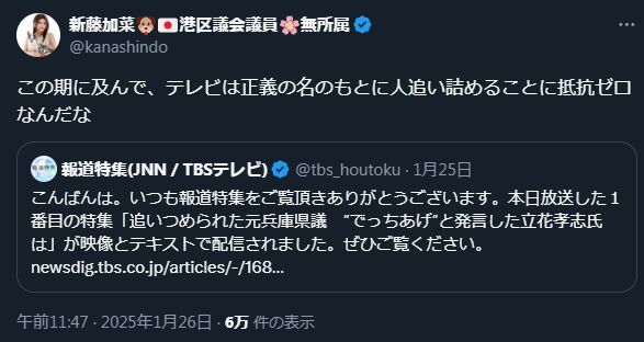 被害者面する加害者のおぞましさ #新藤加菜、立花孝志追及を「正義の名の下に人を追い詰めている」と被害者面で非難する
