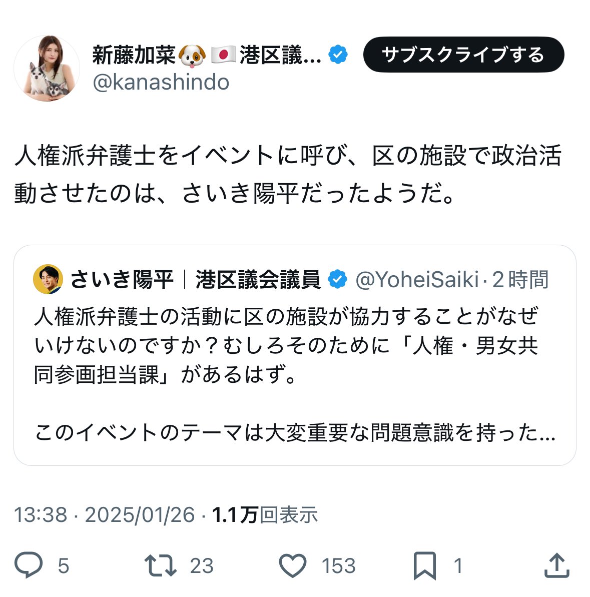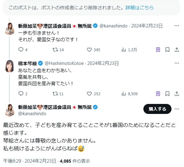 <この記事で分かること>【#新藤加菜 が同期の港区議についてもデマ! 絶対的公人不適格者・新藤加菜】の続きを読む