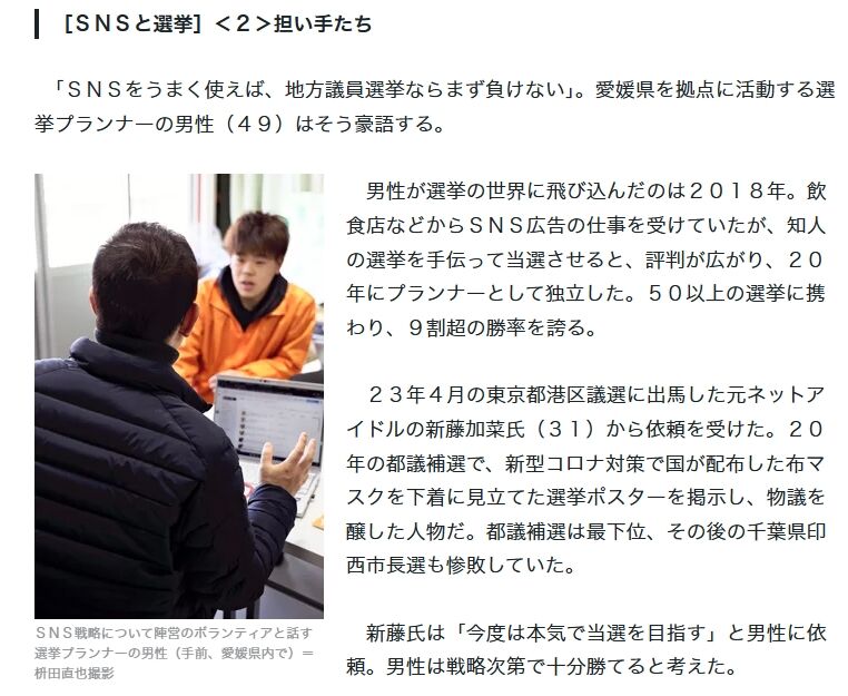 - 新藤加菜が「選挙プランナー」に依頼し、99万円を支払ったこと。
