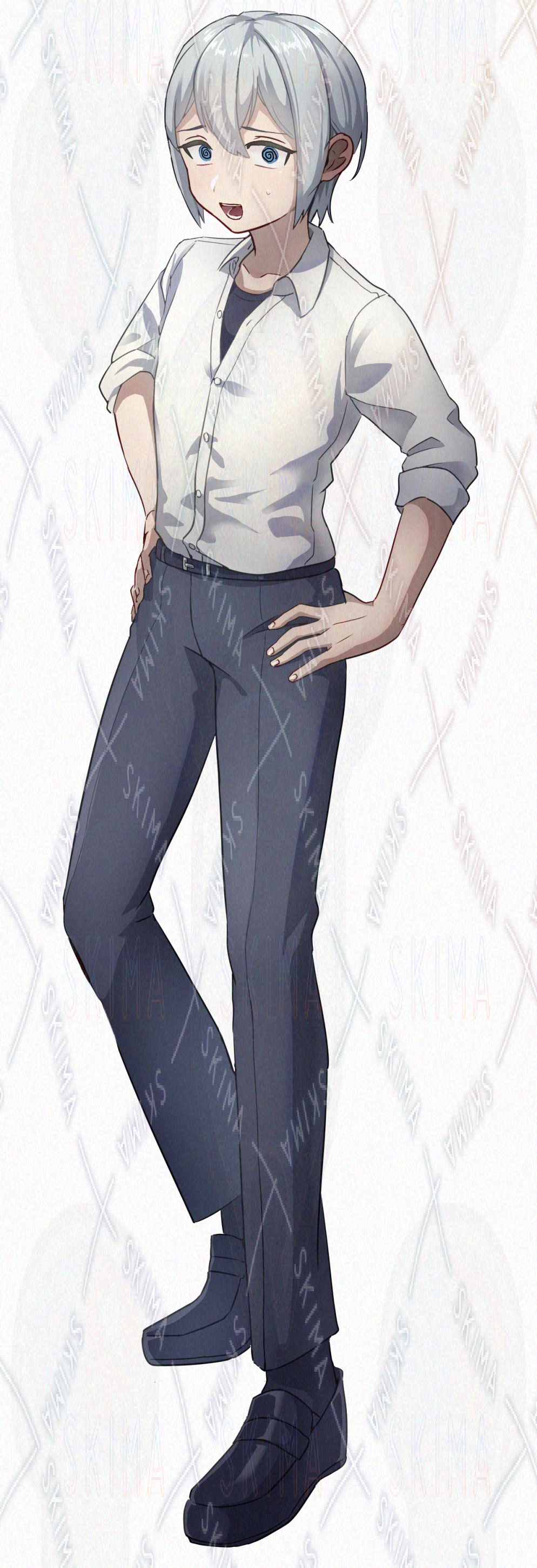 学生服から神社の和装に衣装チェンジできる少年と青年の間くらいの人です。