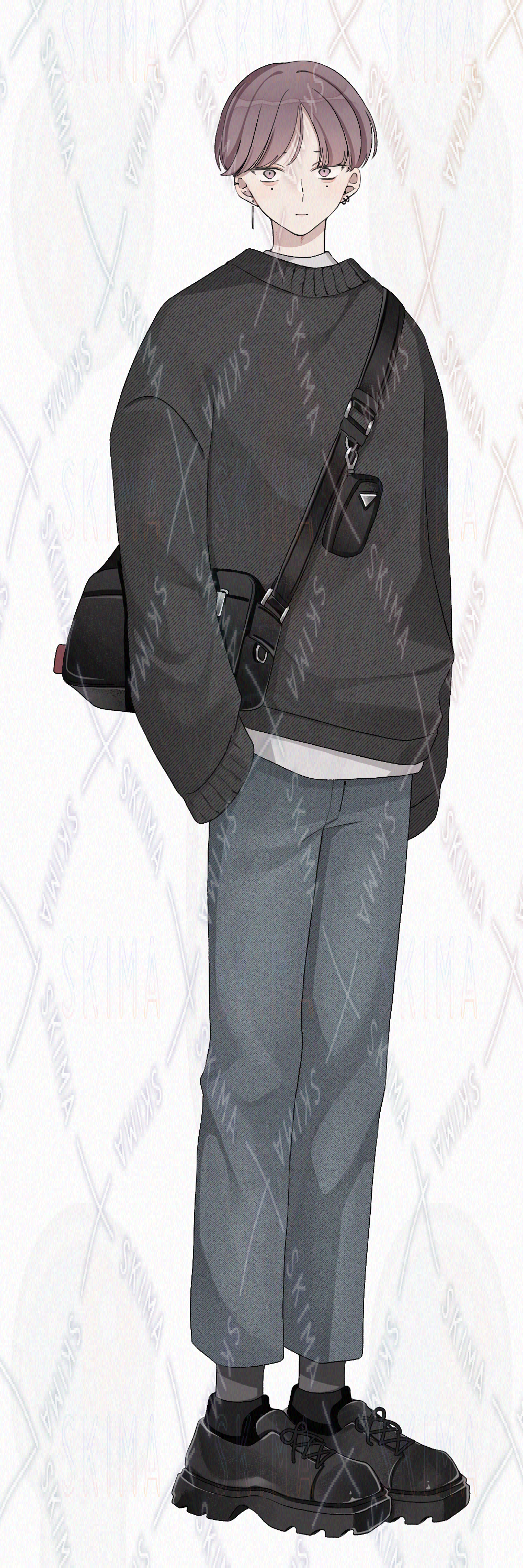 【表情差分5種】マッシュヘアの男子大学生 青年