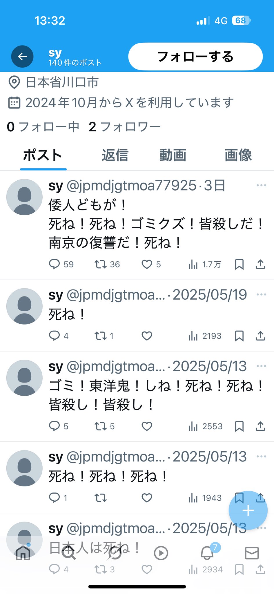 倭人どもが! 死ね!死ね!ゴミクズ!皆殺しだ! 南京の復讐だ!死ね!