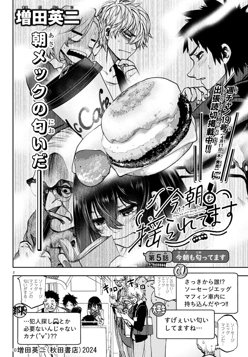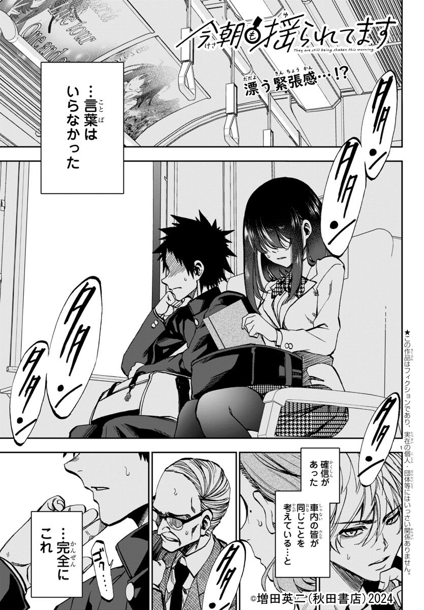 今朝も揺られてます by チャンピオンクロス。午前6時58分舞原行きの通学電車。名前も知らないあの子と僕…と、その乗客⁉高校生の男女2人が醸し出す甘酸っぱい雰囲気に、乗客たちが心情駄々洩れで盛り上がる‼新感覚のシチュエーションラブコメ‼