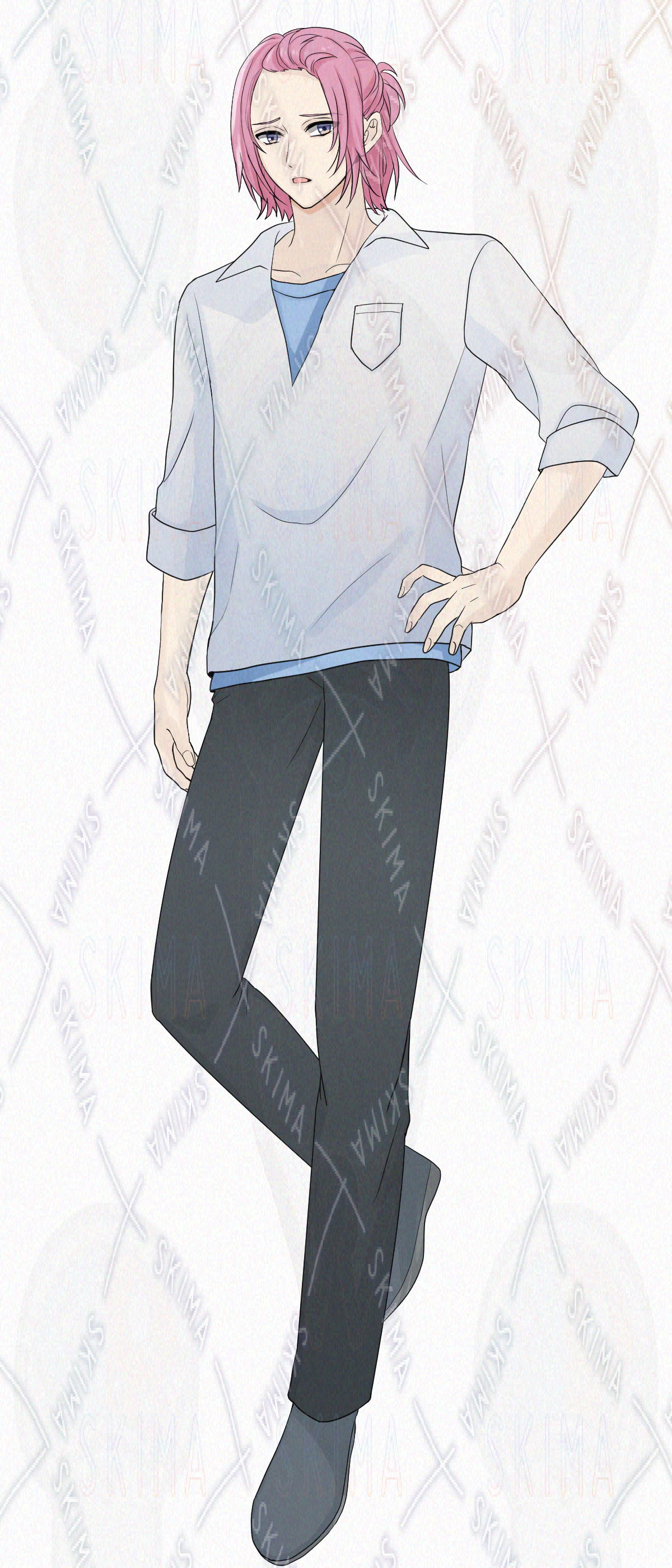 立ち絵、表情差分、男性、ピンク髪、カジュアル、クール