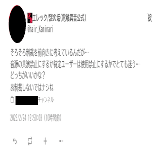 一部ユーザーの使用禁止措置と、2025年8月から一部の音源との共演禁止措置を施すことになりました。