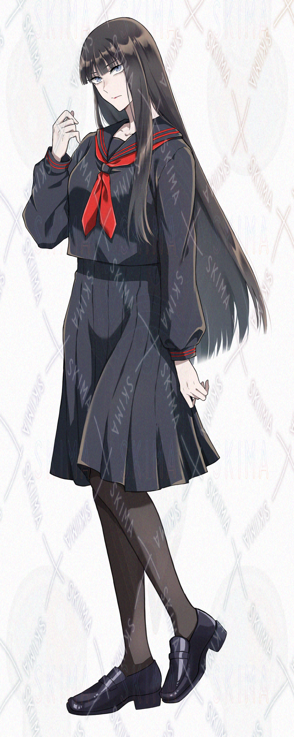 少女/女性/セーラー服/黒髪ロング/ぱっつん/アンニュイ/妖艶/ミステリアス/アニメ塗り/