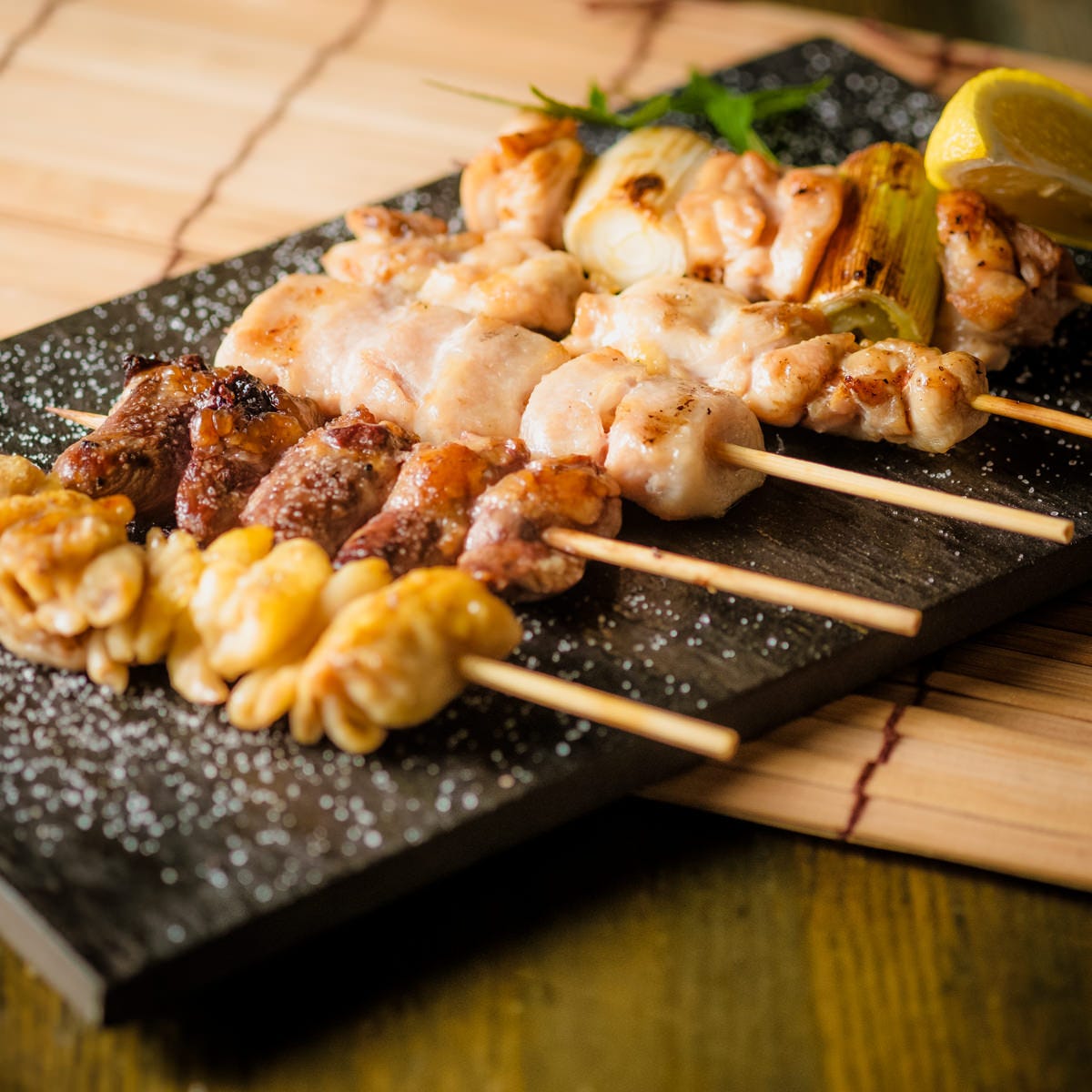 幅広い方に人気の「野菜肉巻き串」と「まぐろのほほ肉レアステーキ」がお得についた『とくがわコース』。野菜肉巻き串は、上質な脂の豚バラ肉と新鮮野菜のうまみがぎゅっと詰まった当店自慢の逸品。もちろん、鮮魚や地鶏もお楽しみいただけます。