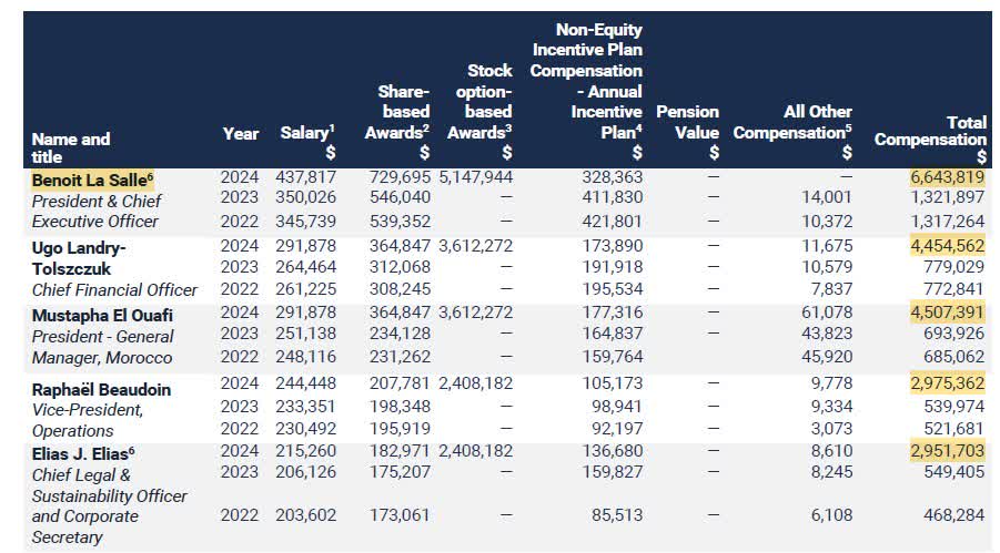 Management Compensation Table (2024 Management Information Circular)