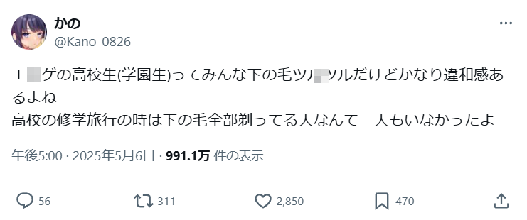 - 2次元に下の毛あると萎える