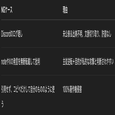 「鍵アカのスクショ」「非公開サーバの発言ログ」→アウト