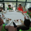 오후 간식시간!(주방팀에서 준비해주신 맛있는 복숭아와 방울토마토, 매점의 핫바와 아이스크림, 츄러스~~~ 신나게 놀아서인지 너~~무 잘 먹는 학생들~~ㅎㅎ)