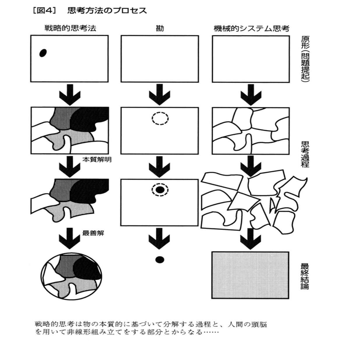 これは、ある程度型化された思考ではあるが、半固定的であり、目の前のケーステーマに適合したアウトプットが出てくるので、レベル1の対策廚とは明確に異なる。