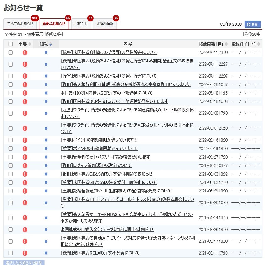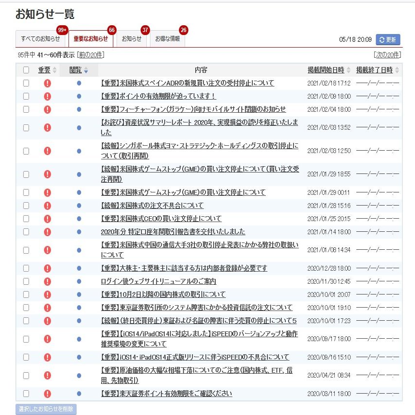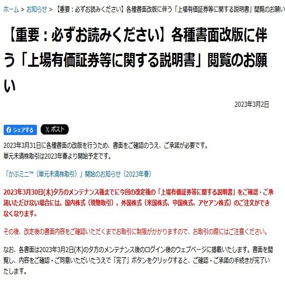 これが重要通知もご覧のありさまで国内株のみを取引していた私の取引状態に配慮したものがほとんどない上、大量に届いてしまうので本当に迷惑に感じておりました。