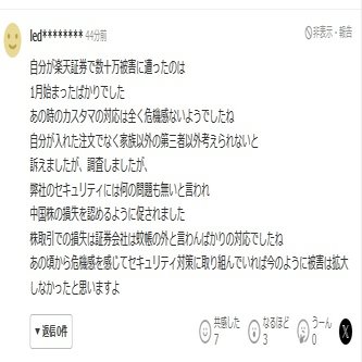 私は楽天証券の顧客で証券口座乗っ取り不正アクセス中国株取引の被害を受け、証券口座乗っ取りの被害者のコミュニティに参加しています。