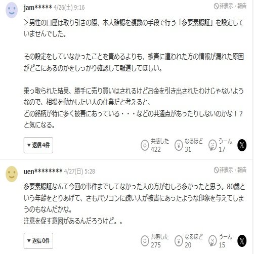 やまもといちろう砲や総会屋2.0と呼ばれるほどの企業訴訟のプロフェッショナルで情報管理に相当気を使っていらっしゃる、やまもといちろうさんでも証券口座乗っ取りの被害に遭われたこと、
