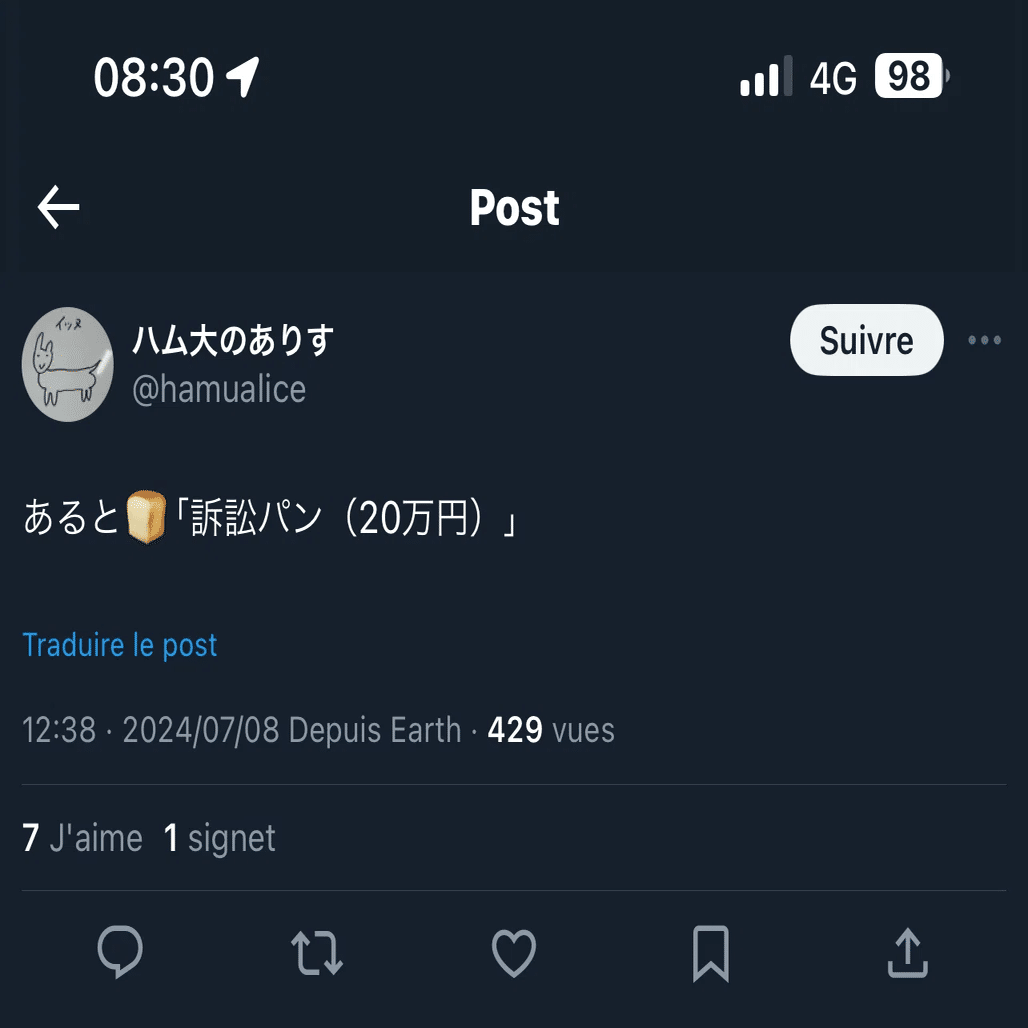 当該ツイートの削除と、同様の行為を行わないことについては受け入れるが、慰謝料の支払いは拒否をするというものであった。それも”断固”として拒否という対抗姿勢。しかし、本当にこれがlaw害氏本人によるものなのかどうかが確証できないため、私はこれを回答として受け取ることを拒否をした。その後、このアカウントは消失した(俗に言う「捨て垢」か?)。つーかこっちは2300円を払ってまで内容証明郵便で送ってんのにそれをDM1本送ったぐらいで「へいへいわかりました」って片付くような甘っちょろいもんやと思うなよ。