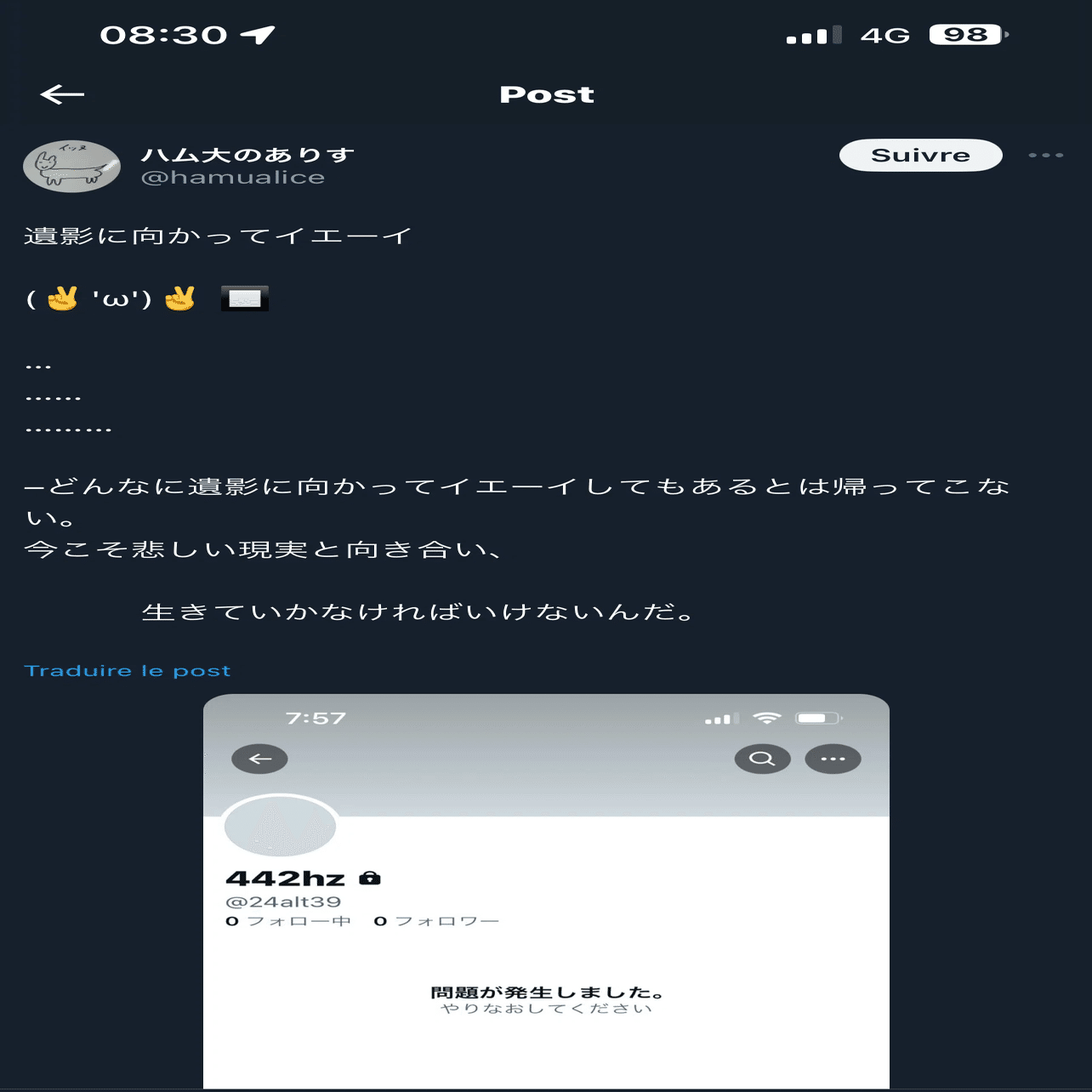 彼が考えを改める様子は微塵も無かった。遣る瀬の無い思いに駆られ、私は次のようなツイートを残し、寝床に就いた。