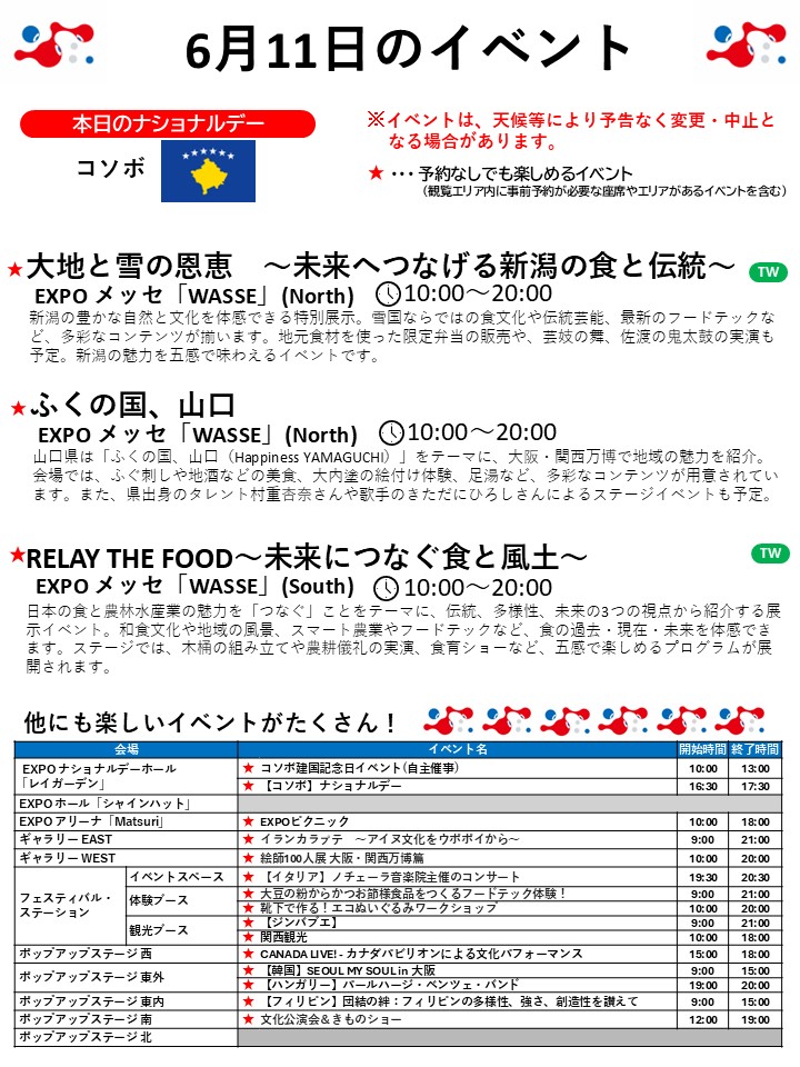 6月11日(水)の万博情報です