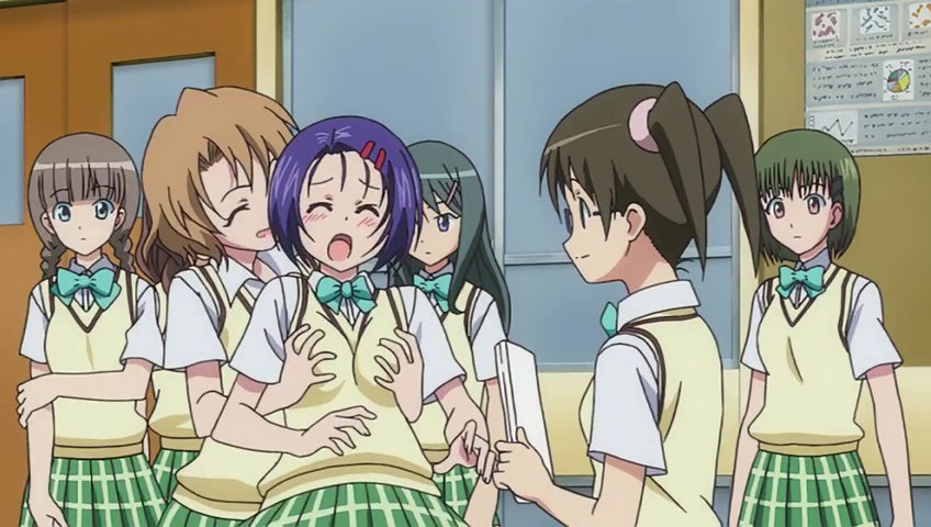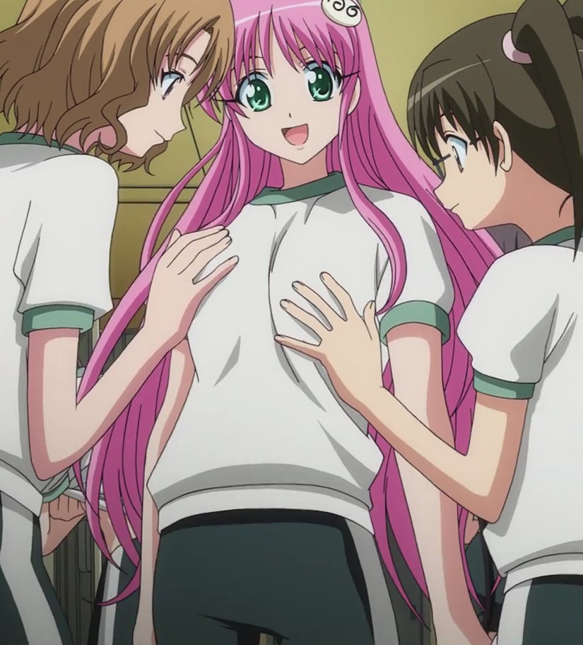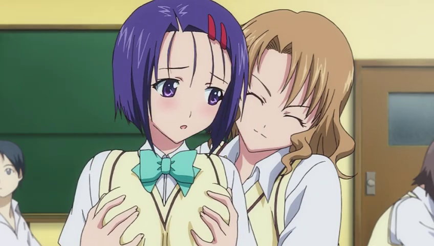 里紗に乳揉みされる春菜。