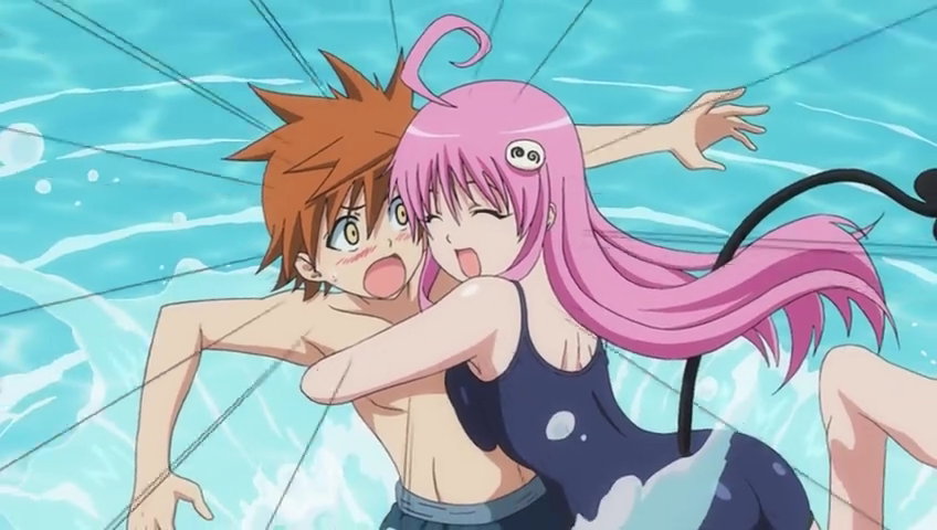 リトに抱きつく水着のララ。