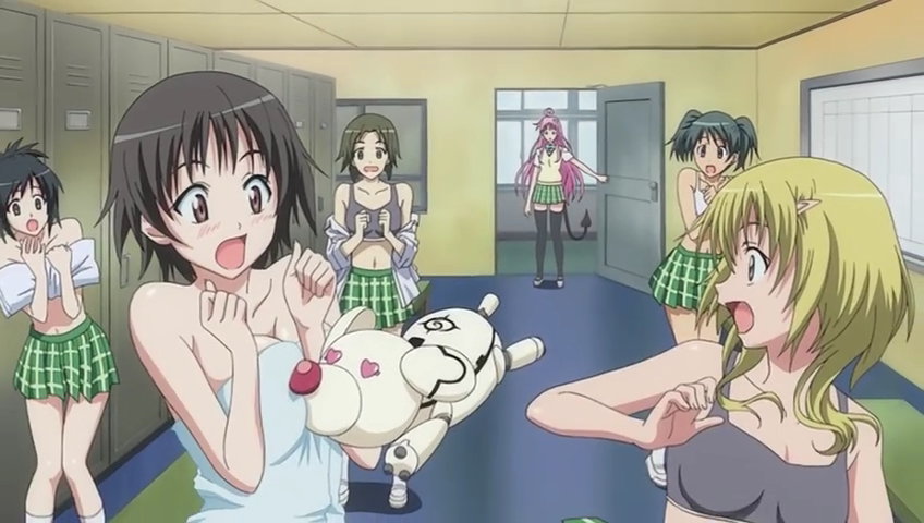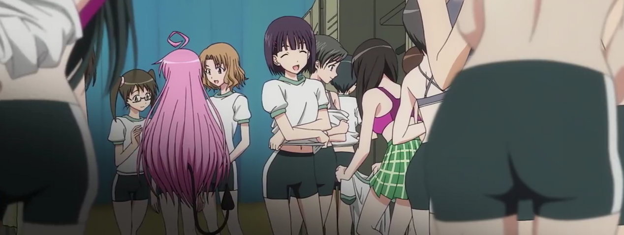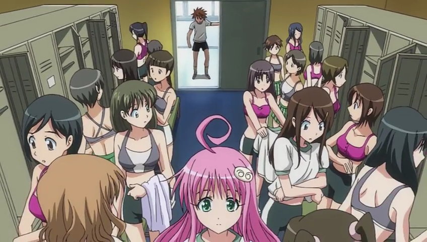 女子生徒たちが脱衣中の更衣室に突入するリト。