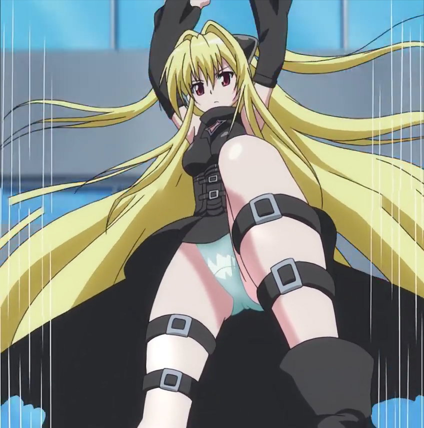 直立するヤミのローアングルからのパンチラ。